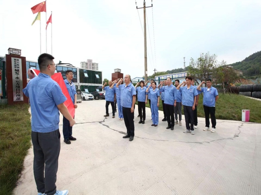圖為市城發(fā)建設公司黨支部在城發(fā)·水云方項目部開展以“廉潔文化進工地 促清廉項目建設 ”為主題的黨小組+項目部工作機制活動