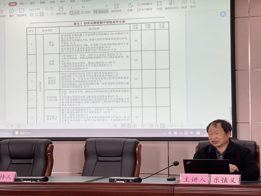 培訓(xùn)結(jié)合建筑施工安全生產(chǎn)標(biāo)準(zhǔn),重點介紹了腳手架和施工用電等安全管理知識。從腳手架施工方案、立桿基礎(chǔ)、架體與建筑結(jié)構(gòu)拉結(jié)、桿件間距與剪力撐、腳手板與防護(hù)欄、配電箱“三級配電、逐級保護(hù)”等安全生產(chǎn)檢查容易忽視的內(nèi)容為切入點,深入淺出地結(jié)合案例分析,培訓(xùn)內(nèi)容干貨滿滿,受益匪淺。