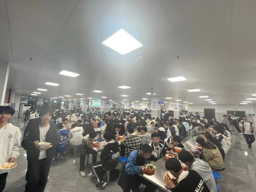 走進黃石三中新建食堂,一層1561 平方米的就餐大廳內,嶄新的餐桌椅整齊排列,通風采光通透舒適,消毒設備一應俱全。午餐時段,880 個就餐座位上人聲鼎沸,熱菜、涼菜、主食、湯品等多個品類的餐食在窗口有序供應,滿足不同師生的口味需求;二層 1456 平方米的特色檔口區(qū)域,提供地方風味、營養(yǎng)套餐等個性化選擇,620 個座位同樣坐滿了前來就餐的師生。